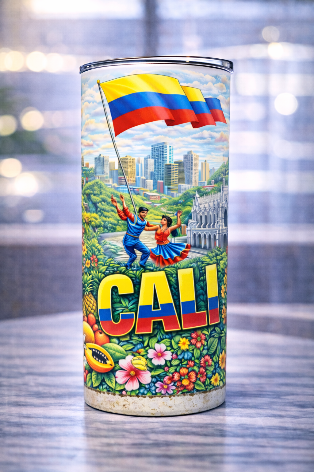 Lleva contigo el orgullo, la alegría y la cultura de Colombia con este hermoso tumbler de 20 onzas, decorado con un diseño vibrante inspirado en la tradición y riqueza cultural colombiana 🇨🇴✨
